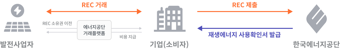전기소비자가 RPS 의무이행에 활용되지 않는 재생에너지 REC를 에너지공단이 개설한 REC 거래 플랫폼을 통해 장기 또는 현물 판매